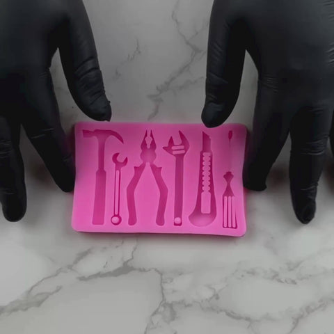 El molde perfecto para el fan de las herramientas. Molde para fondant con 6 herramientas básicas de ferretería para decoración de postres o pasteles.